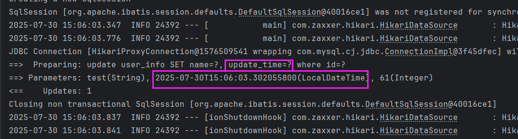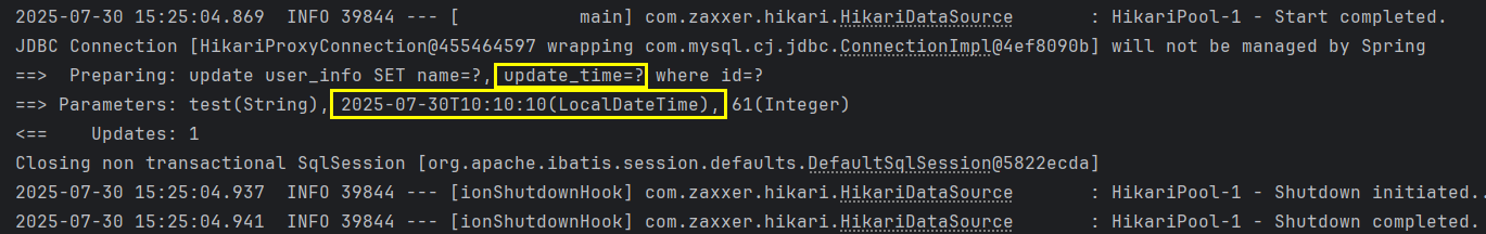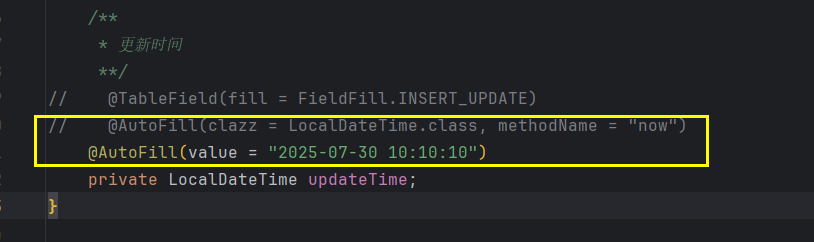为了演示方便,这里只针对实体的updateTime字段处理,使用了硬编码。要想按照配置或者随意指定,可以配置自定义注解打标签,这里然后统一处理即可。