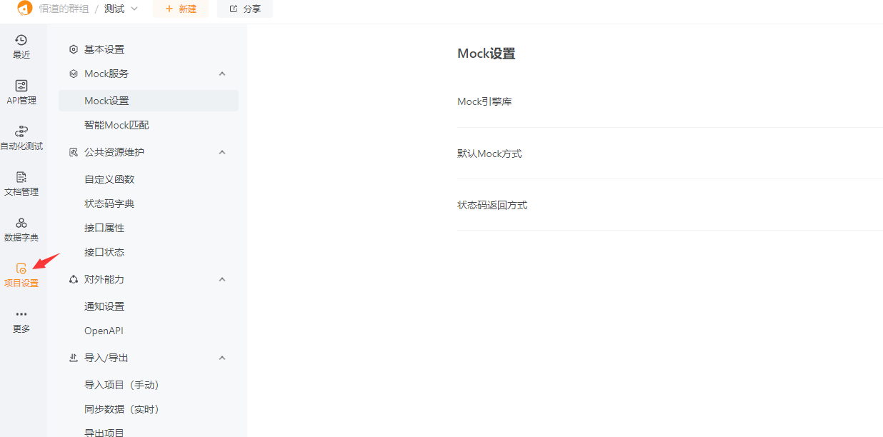 项目管理功能非常丰富,可以设置Mock服务、公共资源、与Idea打通的对外能力等