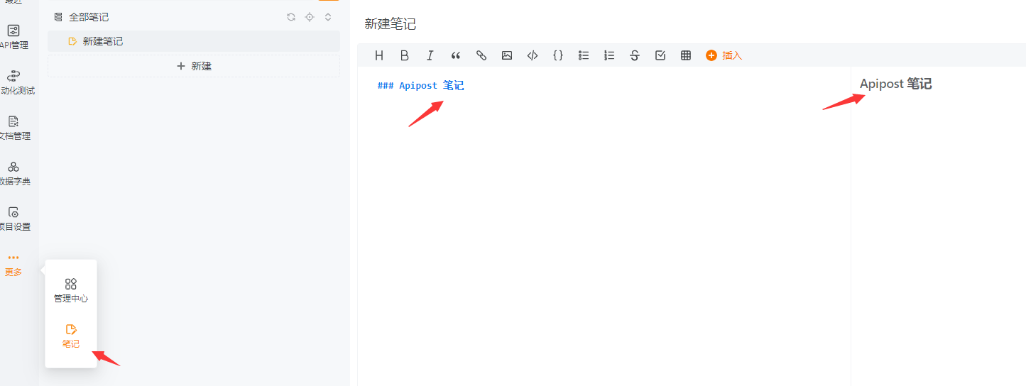 支持Markdown的笔记,方便我们记录零散的知识点或者注意事项。