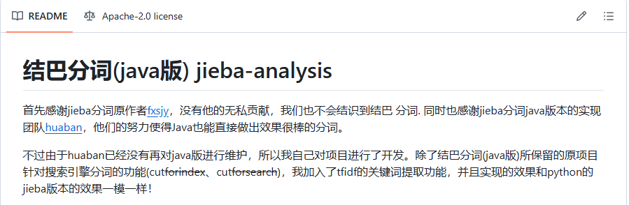 Github地址:https://github.com/huaban/jieba-analysis
