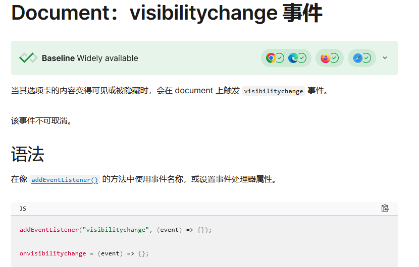 https://developer.mozilla.org/zh-CN/docs/Web/API/Document/visibilitychange_event