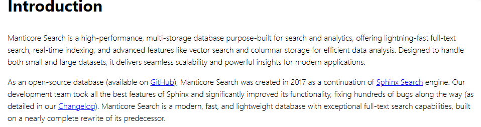 Github地址:https://github.com/manticoresoftware/manticoresearch