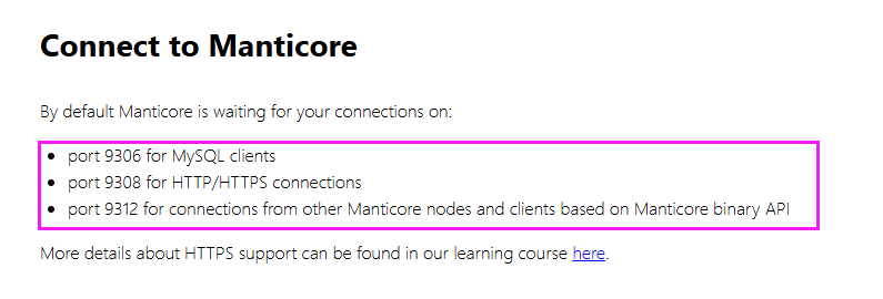 9306:Mysql客户端的端口,也就是可以用Mysql客户端直接连接9308:这个是http/https的连接的端口,主要由于第三方客户端的连接,如Java。9312: 集群节点的端口