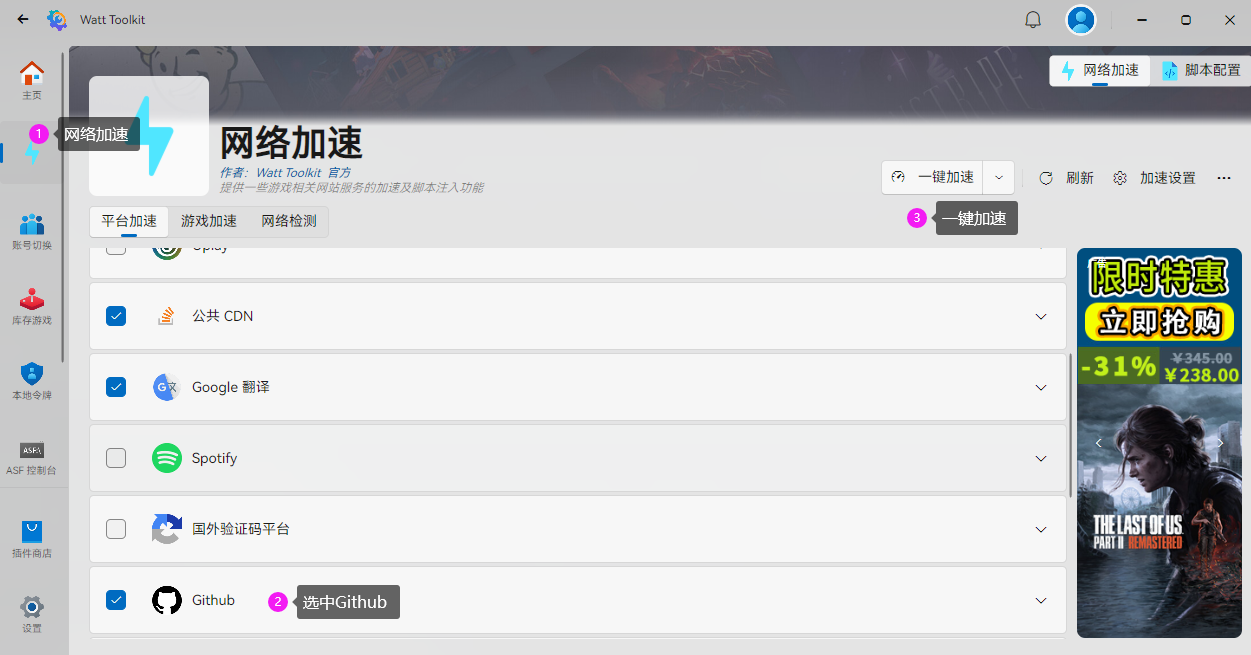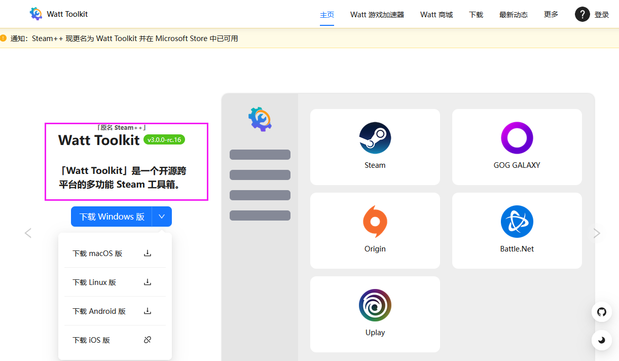 原名Steam++,后改名为Watt Toolkit,支持不同的平台。玩游戏的朋友可能对此并不陌生,可以用来游戏加速。