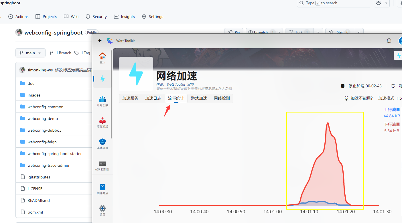 现在就可以愉快的访问GitHub了,工具还自带了流量监控。