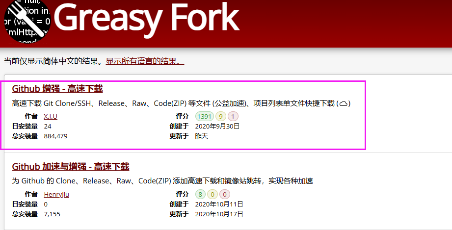 油猴只是一个安装插件的盒子或者容器。真正能够加速下载的其实是里面的脚本。脚本名称:Github增强-高速下载。