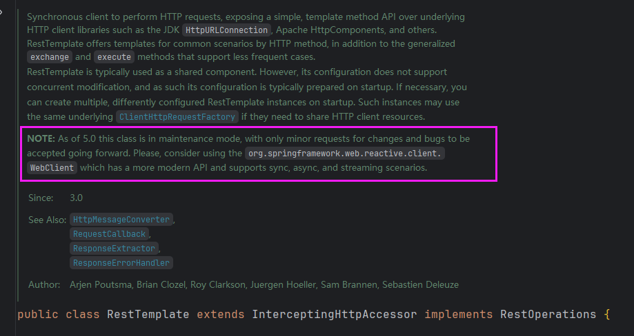 官方说明Spring 5.0以后处于维护模式,只修改bug,不再新增功能,推荐WebClient。
