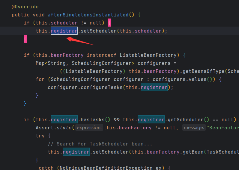 实例化后,注册ScheduledTaskRegistrar