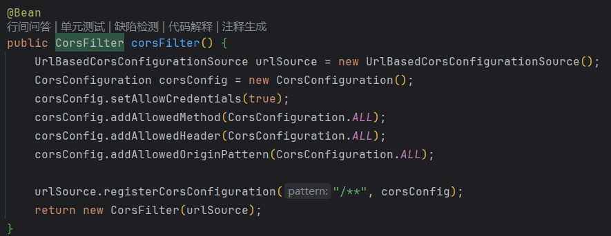配置基本一致,其中CorsConfiguration.ALL就是*。