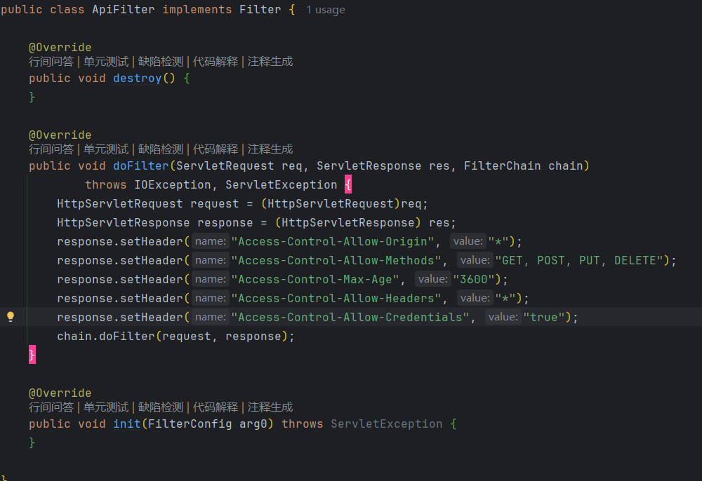 之前介绍的三种,预请求基本不会有问题,就算有问题也不好解决。自定义的跨域拦截器更加灵活。如果里面的尤其的业务逻辑,如果出现异常,就是导致预请求失败。这时我们需要特殊处理。增加如下的代码: