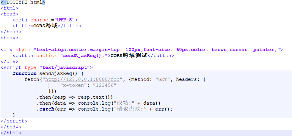 跨域可以再网关层解决,如Nginx,也可以从服务端解决。我们从服务端的角度介绍几种方案。我们先用浏览器的一个HTML和服务模拟跨域请求。