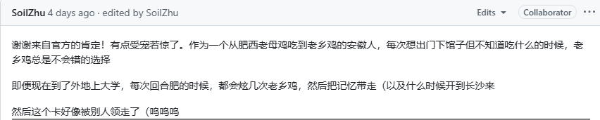 不得不说老乡鸡霸气。但是直接公开充值密码,也是让大家苦笑不得,笑称发卡也开源。作者也表示受宠若惊,并表示没有领到。已经被其他小可爱领走了: