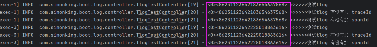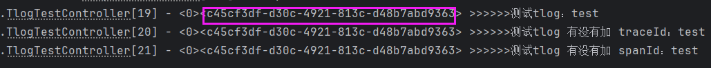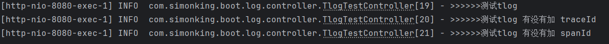 log.info(">>>>>>测试tlog 有没有加 spanId");