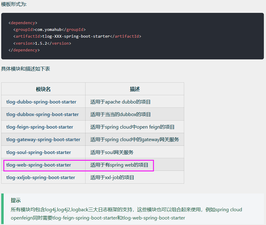 <artifactId>tlog-web-spring-boot-starter</artifactId>