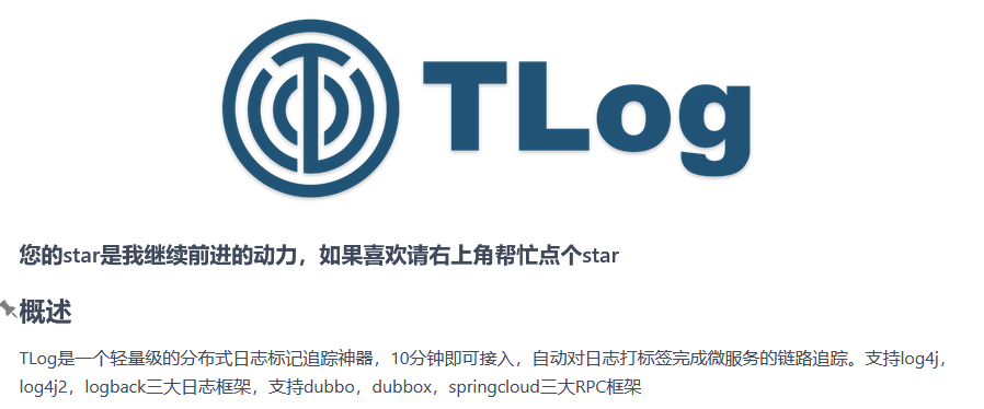 TLog 是一个轻量级的分布式日志标记追踪框架,它并不重复造轮子去记录日志,而是专注于一件事:自动为你的每一次请求生成一个唯一的追踪ID(TraceId),并让这个ID在整个调用链路中无缝传递。