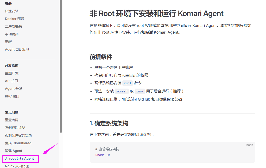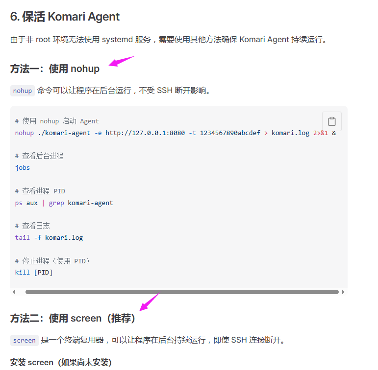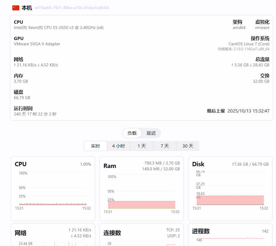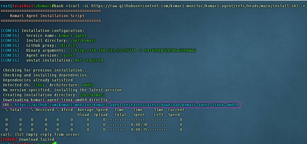 指令会自动下载komari-agent-linux-amd64,成功会后就可以在服务端查看监控的详细信息了。但是部分机器或者配置原因会导致komari-agent-linux-amd64下载失败,我们需要手动安装Agent,安装步骤参考官方文档: