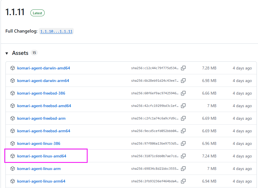 我们需要在https://github.com/komari-monitor/komari-agent/releases上下载属于自己的Agent: