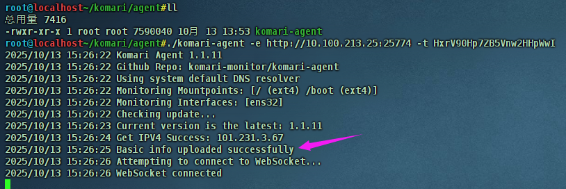./komari-agent -e http://10.100.213.25:25774 -t HxrV90Hp7ZB5Vnw2HHpWwI