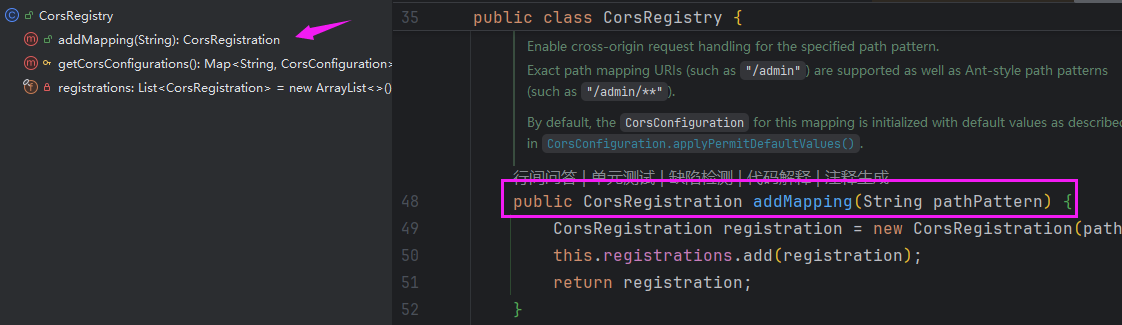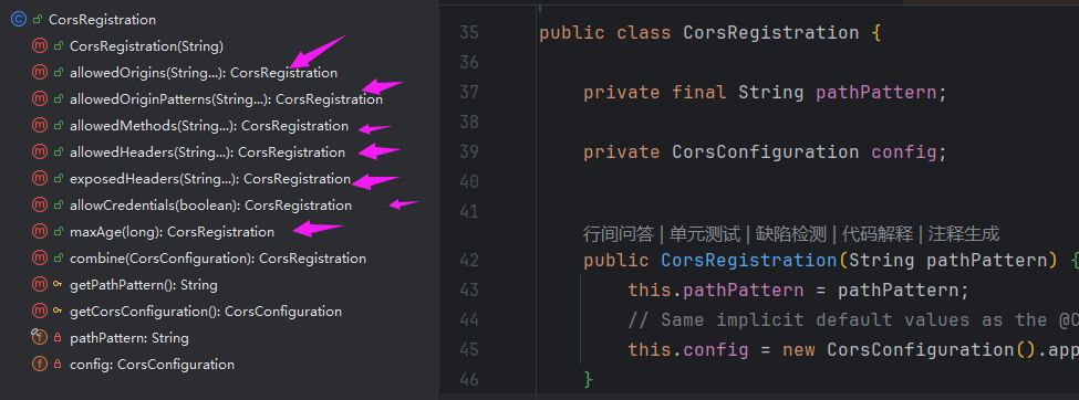 详细的跨域设置需要在org.springframework.web.servlet.config.annotation.CorsRegistration里面设置。