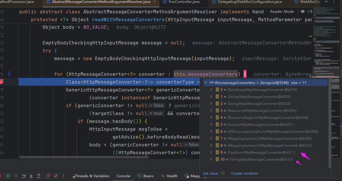 我们需要关注org.springframework.web.servlet.mvc.method.annotation.AbstractMessageConverterMethodArgumentResolver#readWithMessageConverters()方法。