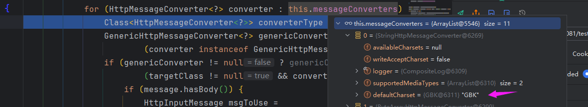 我们发现配置的信息放在了结尾,这不是我们预期的结果,我们希望fastJsonHttpMessageConverter在第一个,默认处理器不加载才对。
