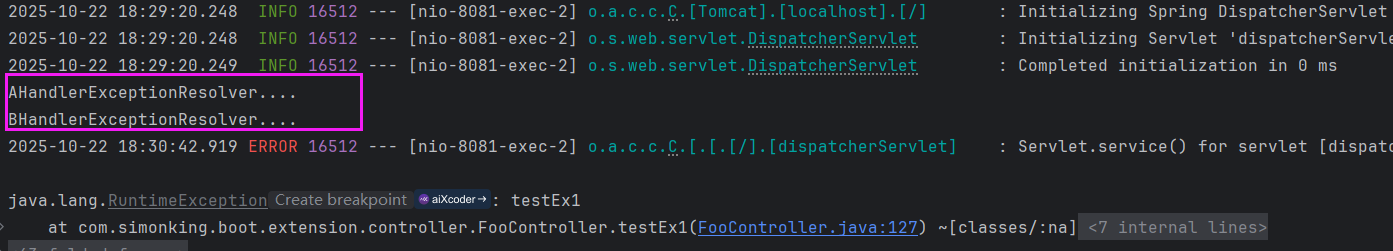 在两个都配置的情况下,AHandlerExceptionResolver直接返回数据。