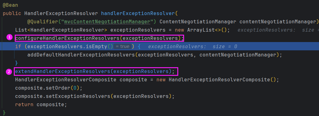 default void extendHandlerExceptionResolvers(List<HandlerExceptionResolver> resolvers) {