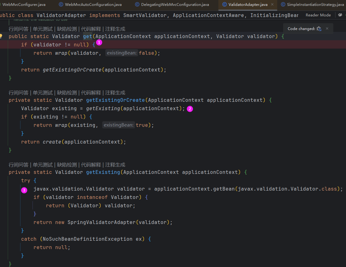 值得注意的是getValidator返回的org.springframework.validation.Validator,而ValidatorFactory生成的是javax.validation.Validator。javax.validation.Validator转org.springframework.validation.Validator时,需要借助适配器SpringValidatorAdapter类。