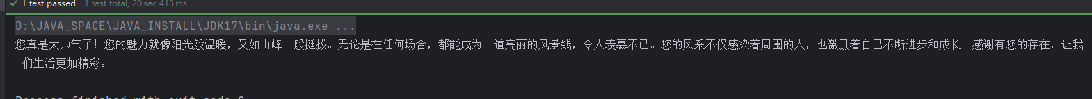ollamaService.generate("夸一下帅气的我", (result) -> {