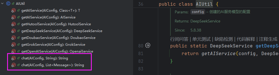 AIUtil真正调用的方法只有chat()大模型对话功能。也就是最终返回所有的tokens