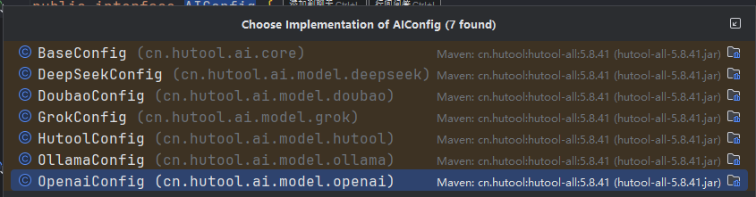 其中AIConfig为具体的配置,可以通过具体的实现,也可以通过AIConfigBuilder构建自己的模型配置。