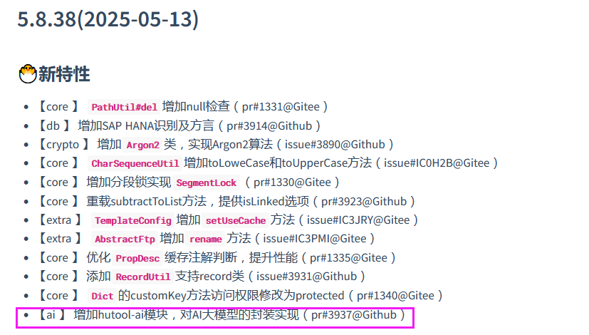 我们暂且不去评论。今天来介绍一下被收购后新增的一个全新模块Hutool-ai,融合了主流的大模型,不再依赖框架,调用大模型就像调用一般方法一样简单,降低使用门槛。