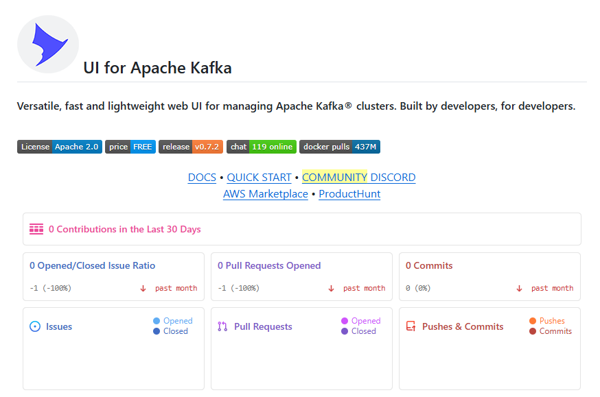 但是,消息的积压、排查总是无法直观的看到问题。急需一款直观、强大的图形化界面来提升工作效率。在GitHub无意间发现了一个项目:kafka-ui。此项目正是解决我的燃眉之急,我们一起了解一下吧。