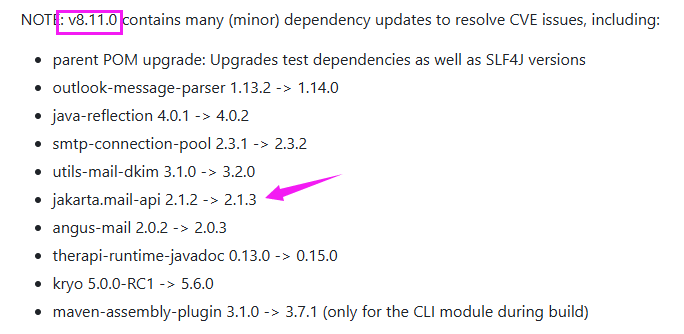 从更新日志来看,v8.11.0已经升级了但部分依赖的版本: