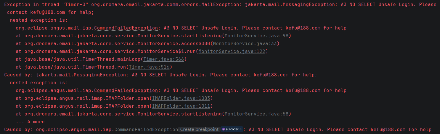 邮箱监听可以监听到某个IMAP协议邮箱中收到的邮件,并对其进行一定的处理。小编在测试发现了异常。