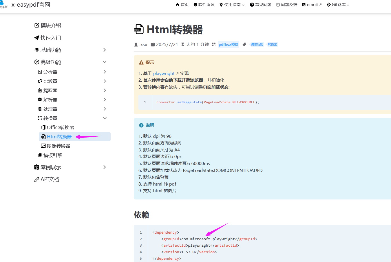 Html转Pdf是pdfbox模块下的一个转化器的功能,是基于 playwright 实现的。而playwright的依赖需要手动引入。Playwright是一个跨语言的浏览器自动化库,由Microsoft开发。虽然主要用于端到端测试,但其强大的PDF生成功能也使其成为HTML转PDF的优秀工具。