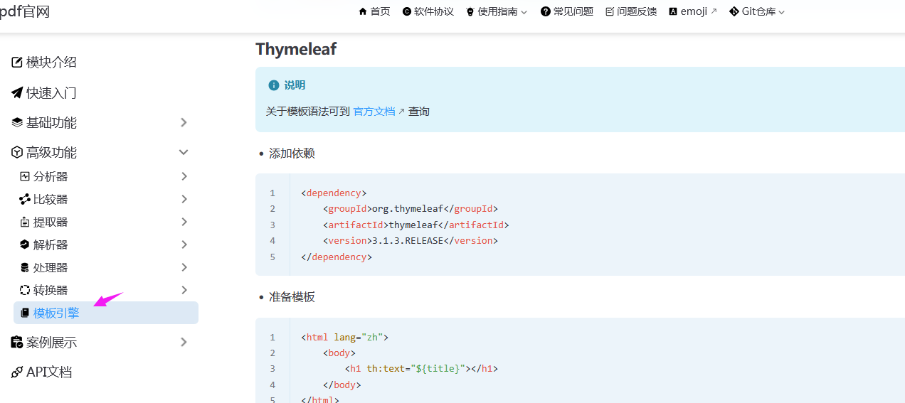 官网地址:https://x-easypdf.cn/guide/pdfbox/advance/templater/%E6%A8%A1%E6%9D%BF%E5%BC%95%E6%93%8E.html#thymeleaf