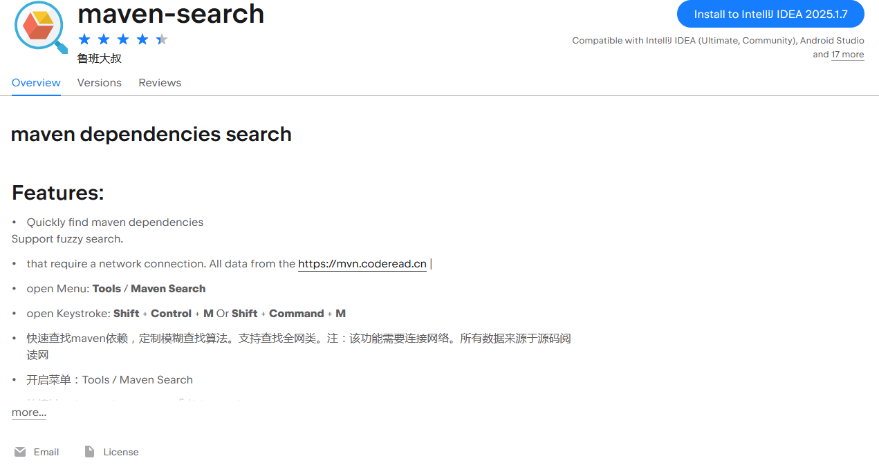 Maven Search内置的连接:https://mvn.coderead.cn/