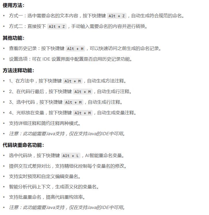 除了命名之后,还可以生成方法的注释等。其他的使用方式,详见插件的使用说明: