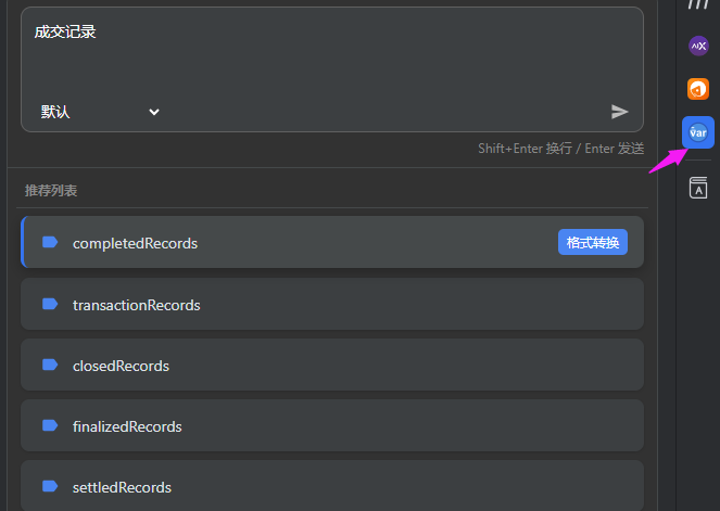 安装完之后,就会出现var这样的图标。点开之后,就可以输入变量,回车即可查看结果。