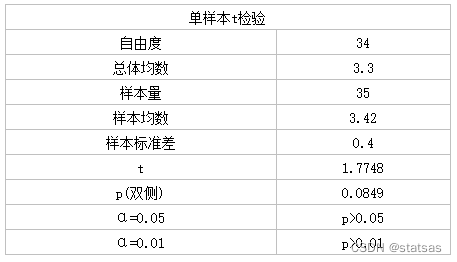以往通过大规模调查已知某地新生儿平均出生体重为3.30kg,从该地难产儿中随机抽取35名新生儿作为研究样本,平均出生体重为3.42kg,标准差为0.40kg,问该地难产儿出生体重与一般新生儿体重有无差异?