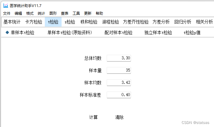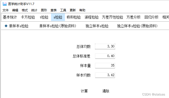 使用医学统计助手计算(statsas.com)