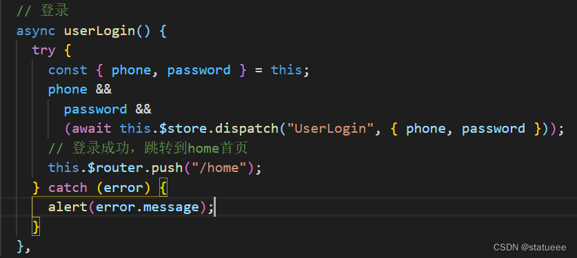 请求成功,进行路由跳转,如果失败,给出错误提示