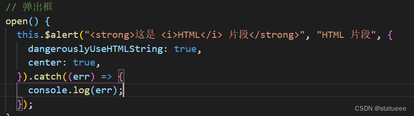 分析:出现Uncaught (in promise) cancel的原因因为this.$confirm方法内置promise方法不能去掉.catch(),没有.catch取消操作无法捕获.