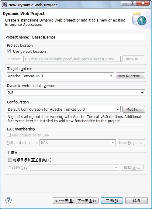 b.新建项目BlazedsDemo参数如下(只供参考,只要能新建出项目即可)