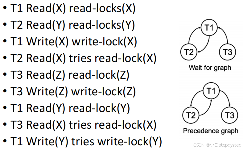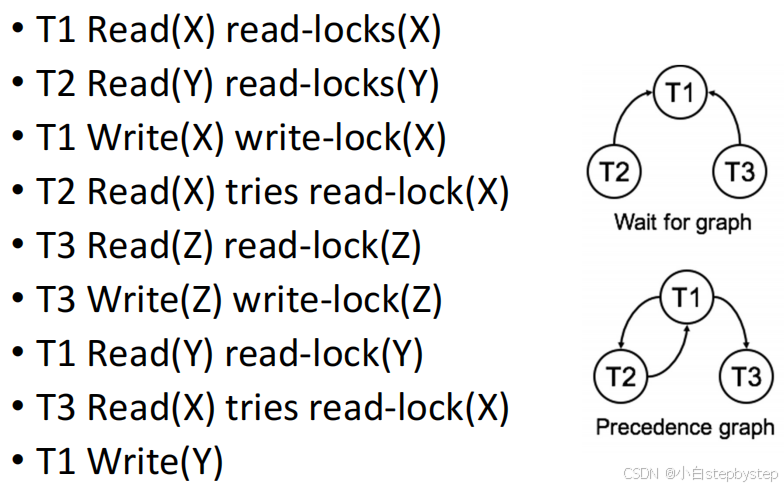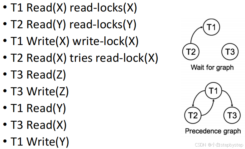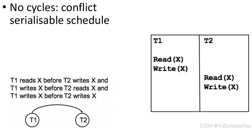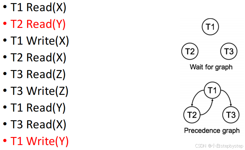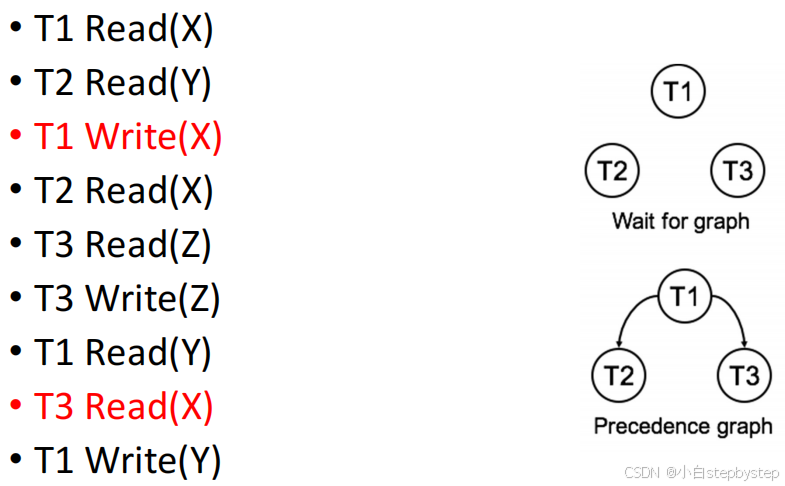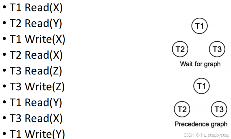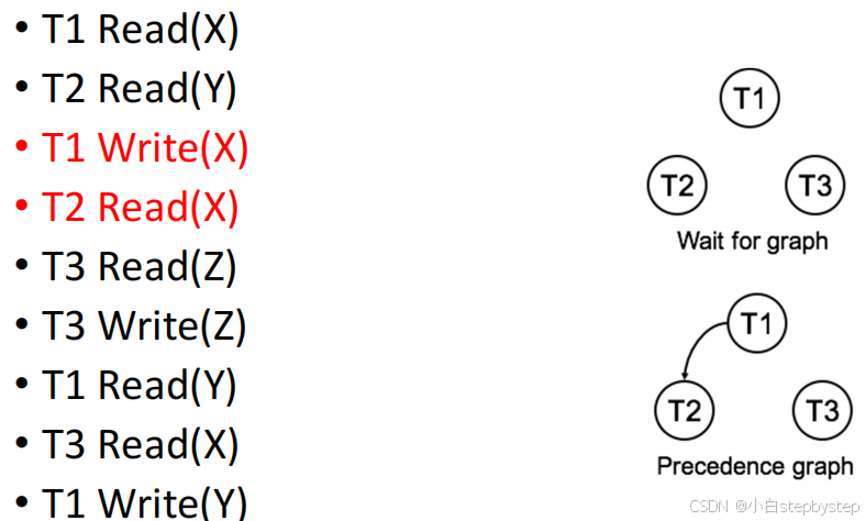 1、优先图Precedence Graph:判断一个调度是否是冲突可串行化的 conflict serialisable?