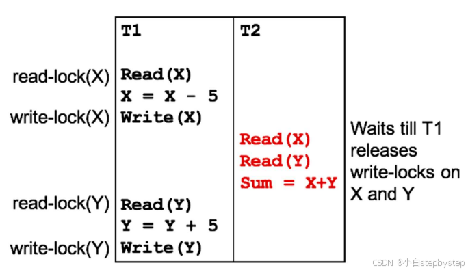 事务被明确地分为两个阶段:增长阶段(Growing Phase)和缩减阶段(Shrinking Phase)。