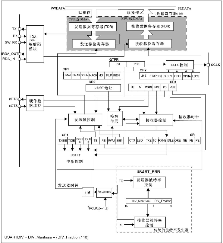 对于STM32中的USART,组成部分如下图所示: