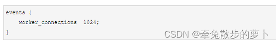 events 块涉及的指令主要影响 Nginx 服务器与用户的网络连接,常用的设置包括是否开启对多 work process 下的网络连接进行序列化,是否允许同时接收多个网络连接,选取哪种事件驱动模型来处理连接请求,每个 work process 可以同时支持的最大连接数等。