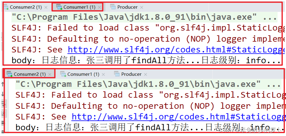 启动两个消费者,然后再启动生产者发送消息;到IDEA的两个消费者对应的控制台查看是否竞争性的接收到消息。